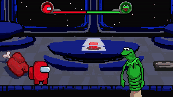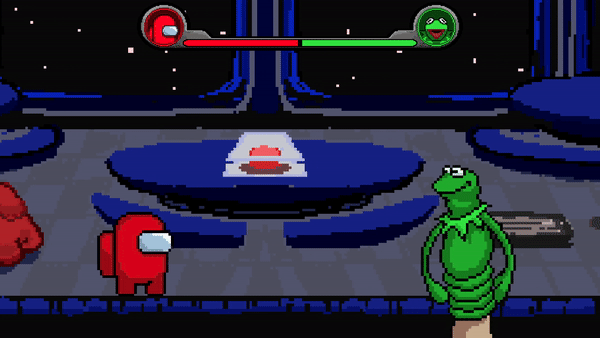 I mentioned previously that some attacks have unique differences between their light and heavy versions, most of these are reserved for special attacks, let's look at 2 of these as examples. The Among Us crewmate's special kick allows him to go into a vent and teleport towards his opponent; the light version teleports him in front of his enemy, while the heavy version teleports behind. Similarly, performing Kermit's special kick will throw him across the stage, but your input will decide whether he gets thrown low or high, giving players the ability to mix up their opponents.